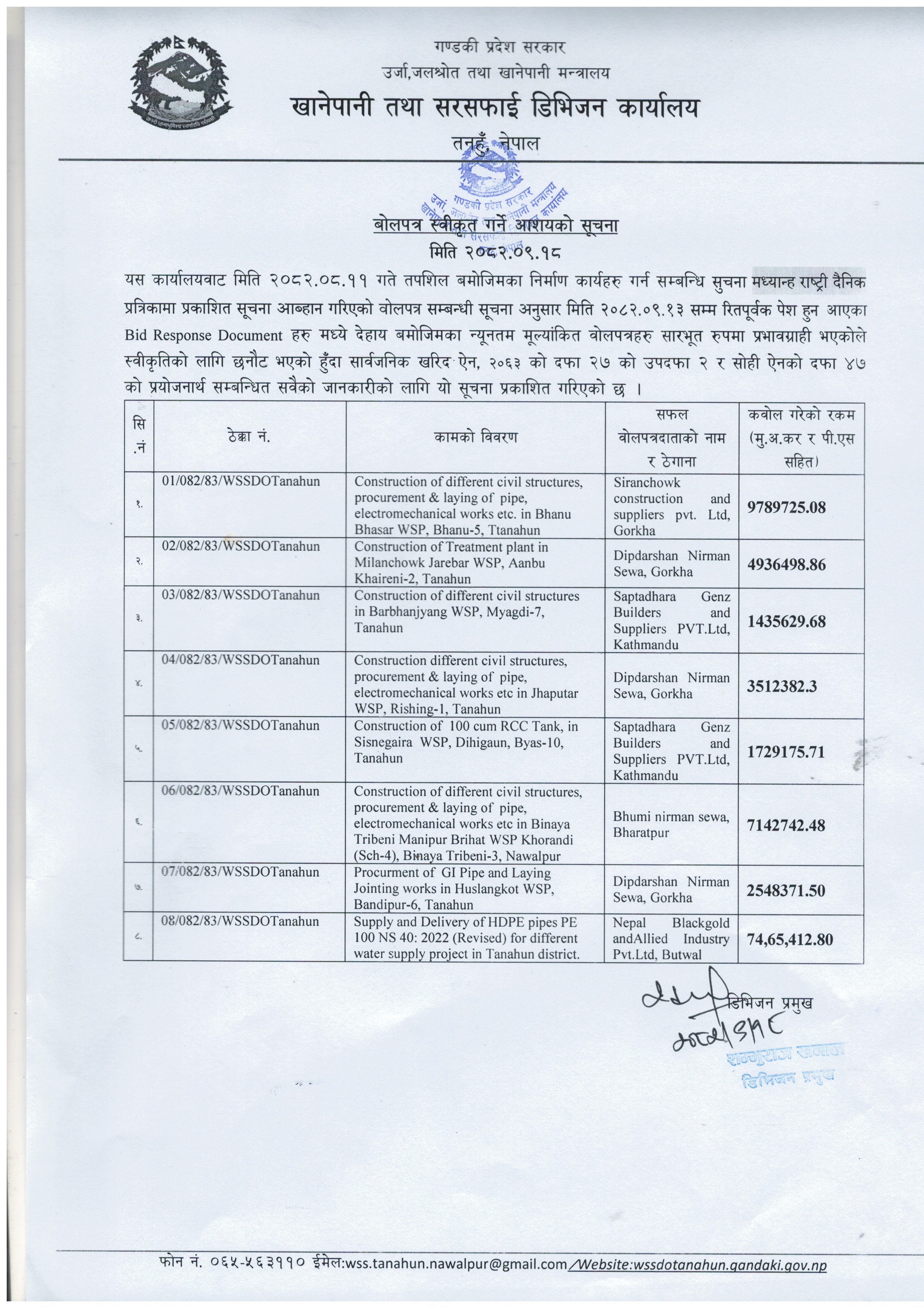 © सर्वाधिकार सुरक्षित खानेपानी तथा सरसफाइ डिभिजन कार्यालय, तनहुँ
